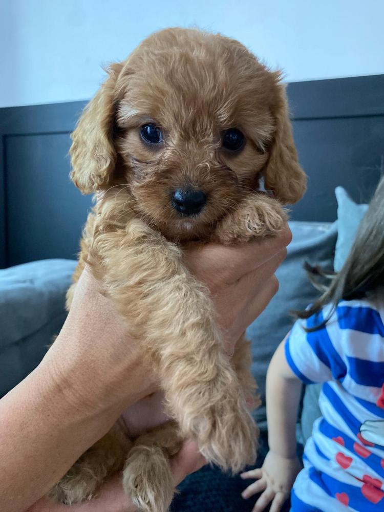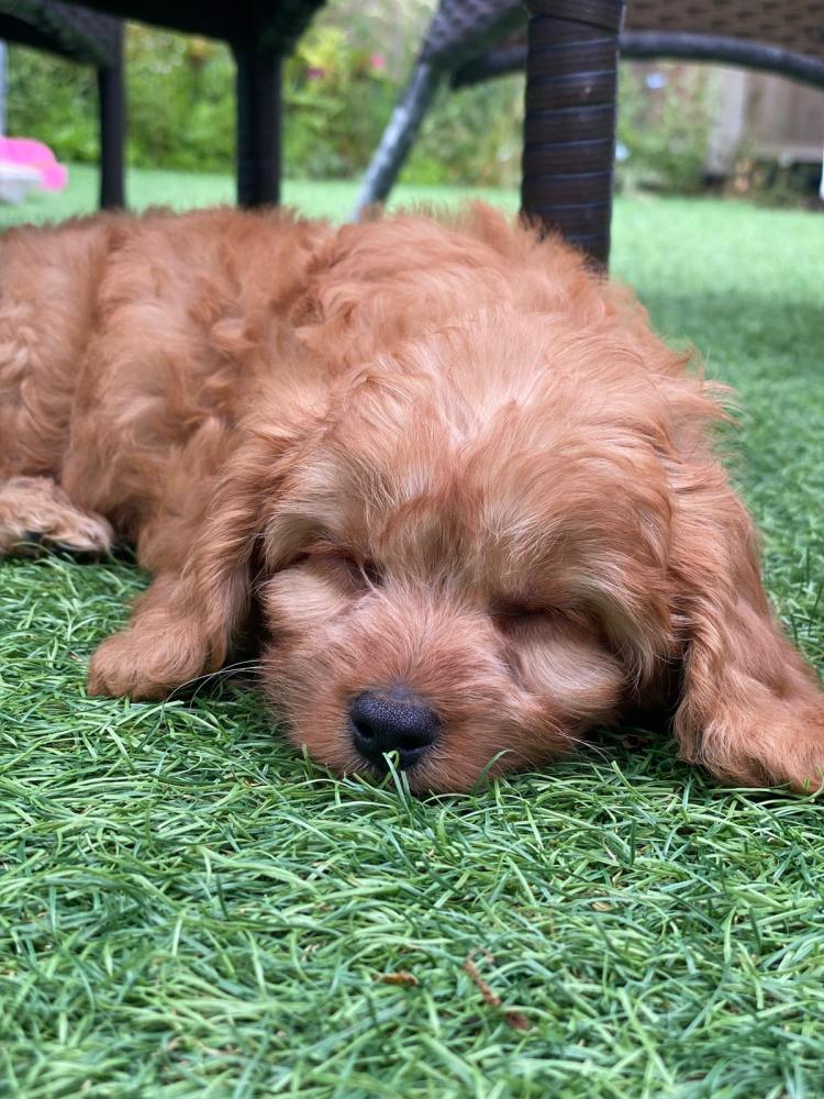 The stud teddy is a gorgeous proven KC Registered Red toy Poodle stud producing stunning healthy puppies with excellent temperaments and amazing coat colours. He has many champions in his pedigree, fabulous colouring is highly desirable and he is much admired when he is out on his walks. He has had Red, Apricot, the colours of the pups depend on Daisy my Red toy Cavapoo as well. Both of the are 8 inches in height, and they make ideal parents for the puppies.