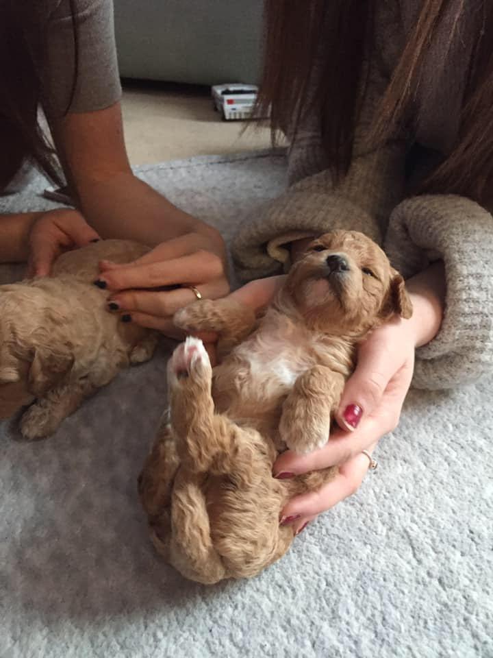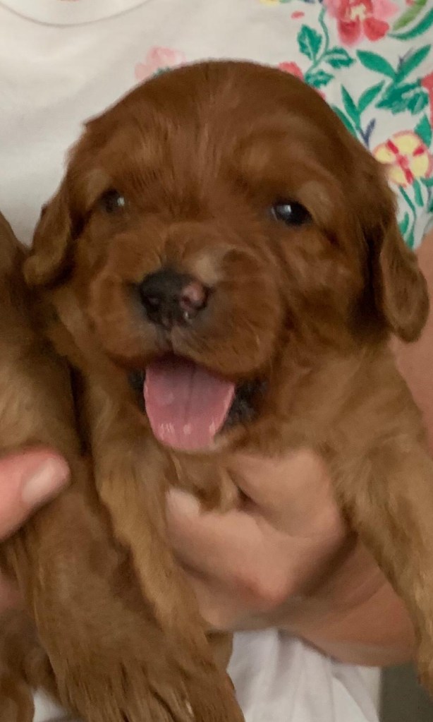 Altophy (prcd-PRA) – Neonatal Encephalopathy, Degenerative myelopathy, Willebrand Disease. They are home reared and part of my family, my puppies will be vet checked, they are very well cared for, I am a professional dog groomer I will be able to help with any questions regarding the coats, they are hypoallergenic and non moulting. My puppies will have soft wavy curly coats and are dark red/ apricot in colour. The Puppies are socialised they are very happy, outgoing, and playful. They will make loving family pets. They love everyone, especially children. They love to cuddle up with you either on your lap or by your feet. They are the perfect companion dogs. They come with all health certificates, pedigree certificates and vet checks, inoculations and microchips, a puppy pack with food toys and blankets from Mum, I keep in touch with my new owners and have 5 star reviews I can help with any questions and advise. Please call me to chat and make arrangements to come and meet the puppies and reserve your puppy. 07342962216