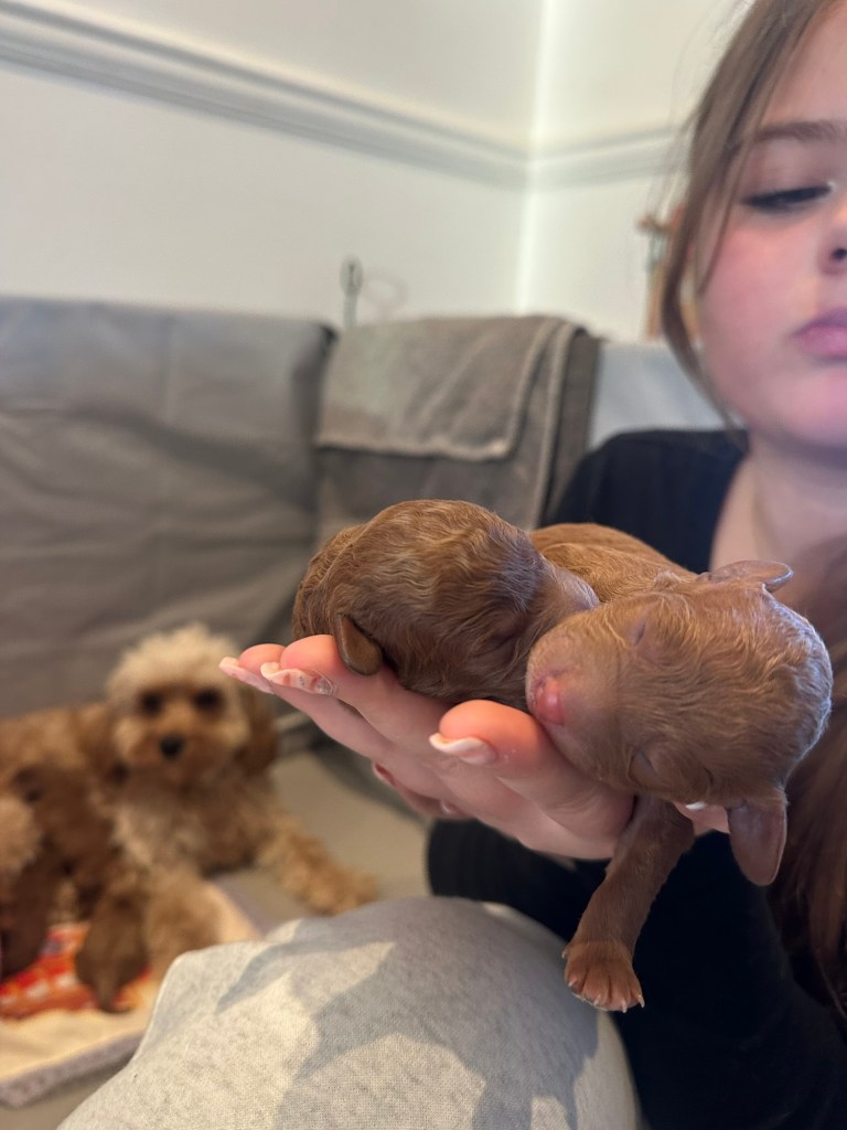 A beautiful premium litter of toy cavapoo puppies have been born on the 02/01/2026, to kennel club registered 5 generation pedigree toy poodle Teddy and toy cavapoo Daisy. Both parents are less than 5kg in weight so the puppies will be between 3kg to 5kg they are very small toy Cavapoo puppies. They are f1b generation toy Cavapoos, health tested parents DNA tested for and Clear of Progressive Retinal
